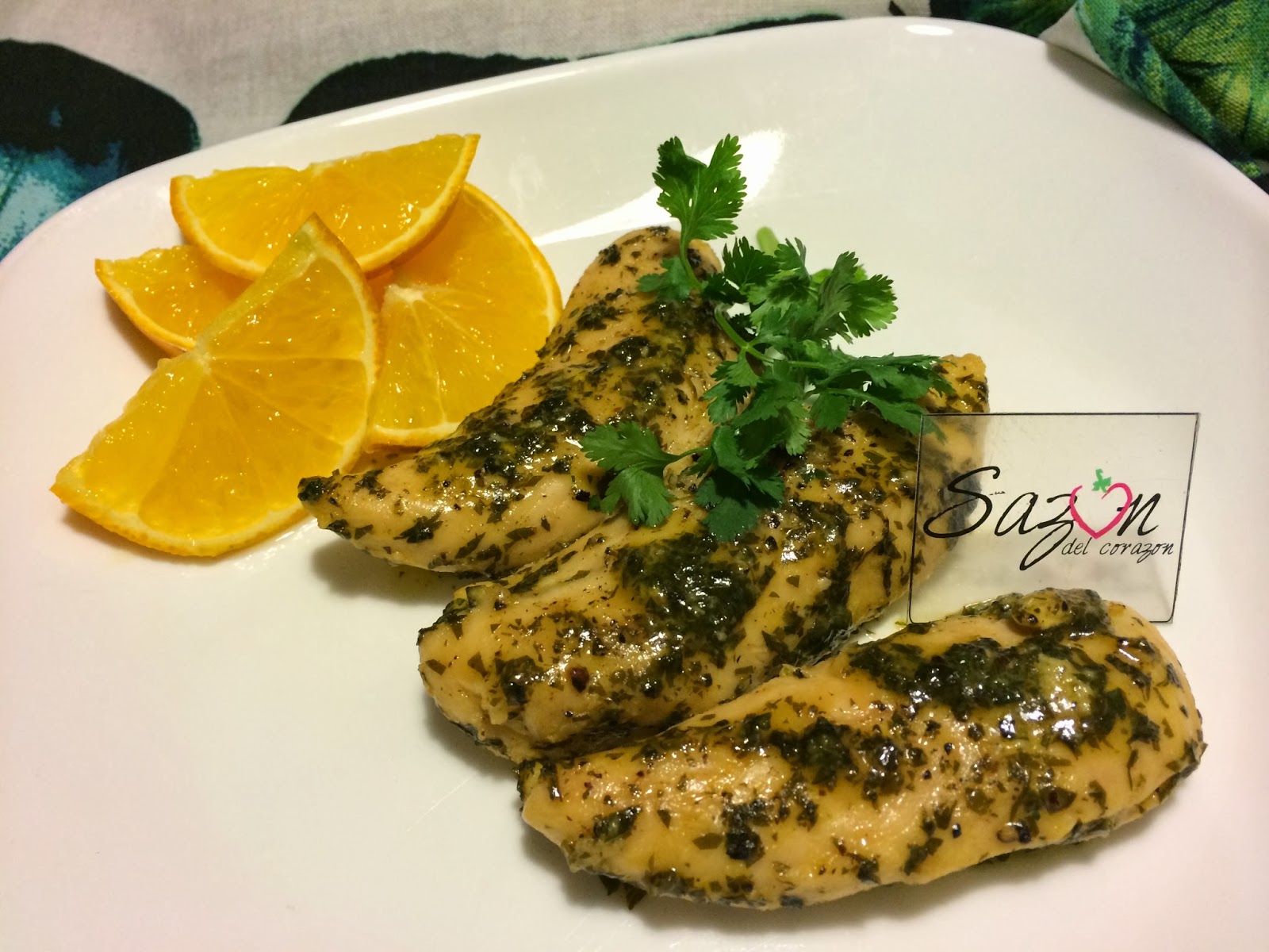 Para servir pones un poco de salsa, encima la brocheta y acomodas los champiñones a tu gusto decorando con los rabos de cebollita cambray.
